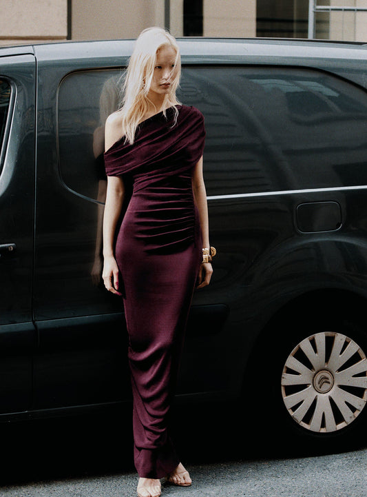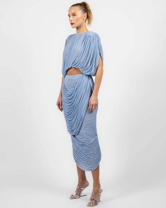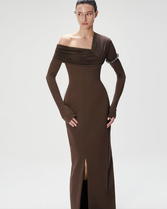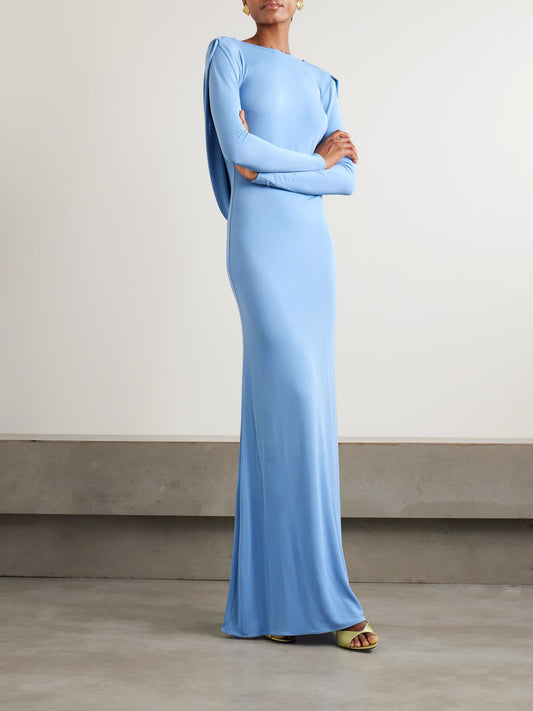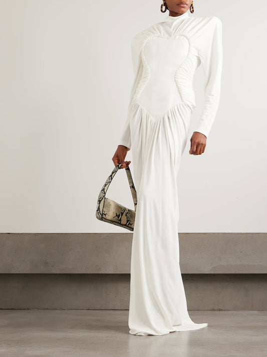 Long Sleeve Draped Structured Maxi Dress White HV0051