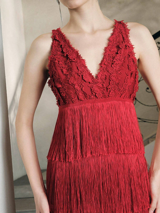 Tassel Bustier Sequin Maxi Dress Black Silver HV2927