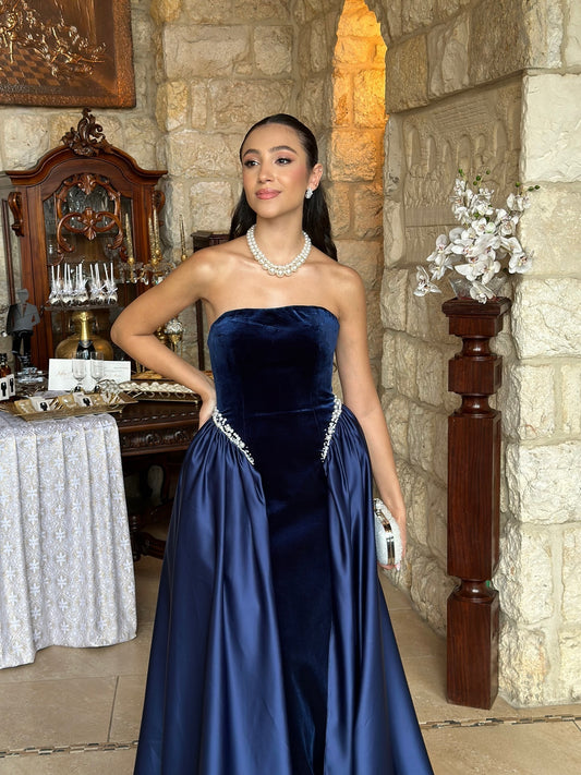 Strapless Corset A Line Maxi Dress Navy Blue HV2680