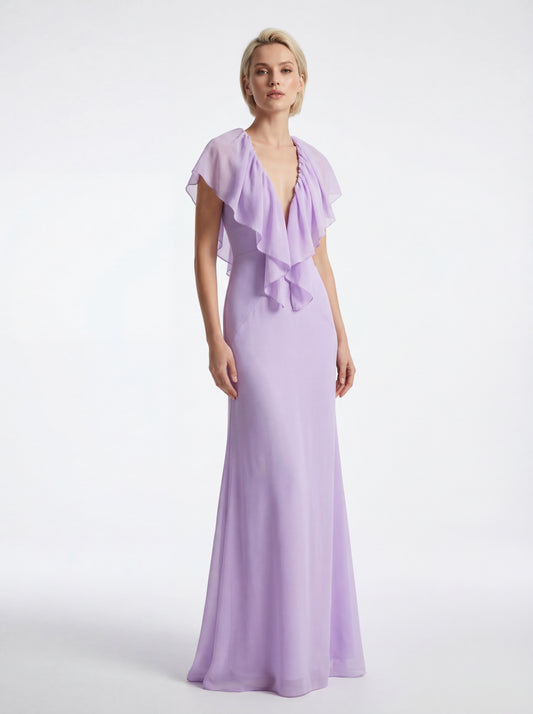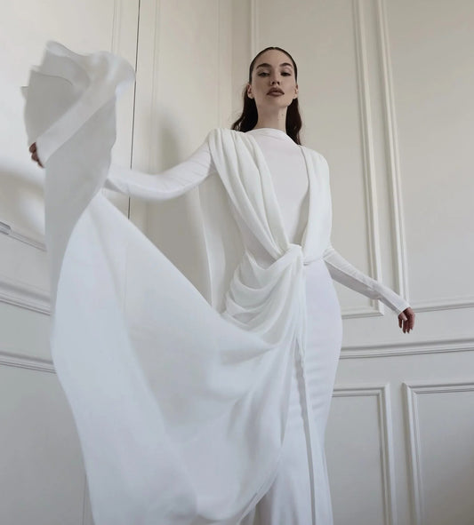 Cape Sleeve Crystal Lace Maxi Dress White HV0038