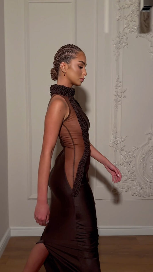 Braided Mesh Insert Maxi Dress Brown HV2644