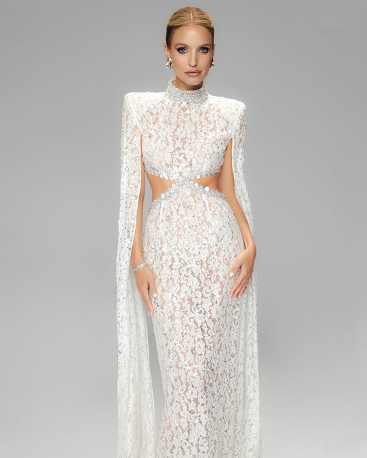 Long Sleeve Structured Lace Maxi Dress White HV2657
