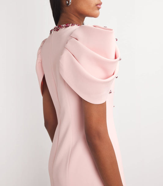 Draped Short Sleeve Crystal Maxi Dress HV2802
