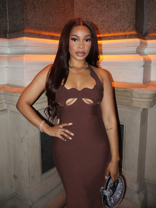 Halter Underboob Cut Out Maxi Dress Brown HV8518