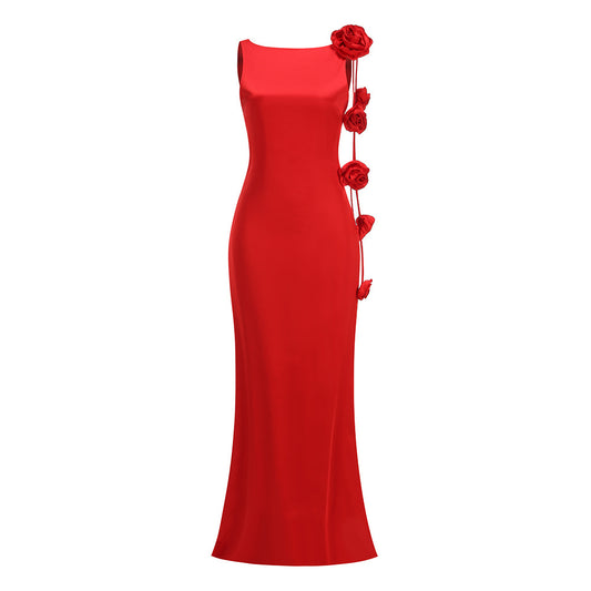 Strapless Crystal Floral Detail Maxi Dress Hot Pink HV2566