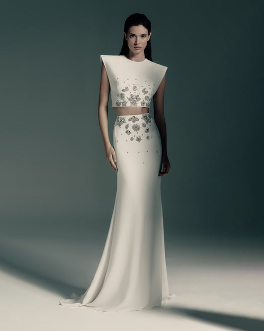 Crystal Flower Detail Two Piece Maxi Dress White HV2710