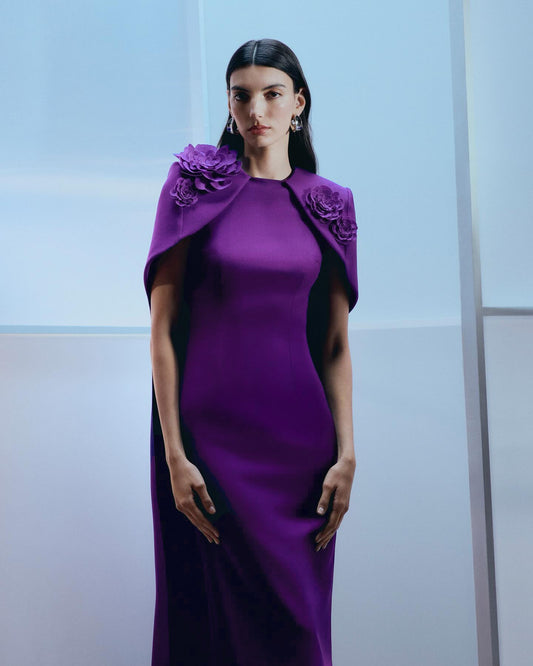 Floral Detail Cape Maxi Dress Purple HV2935