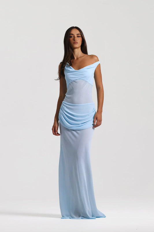 One Shoulder Corset Draped Maxi Dress Blue HV0011
