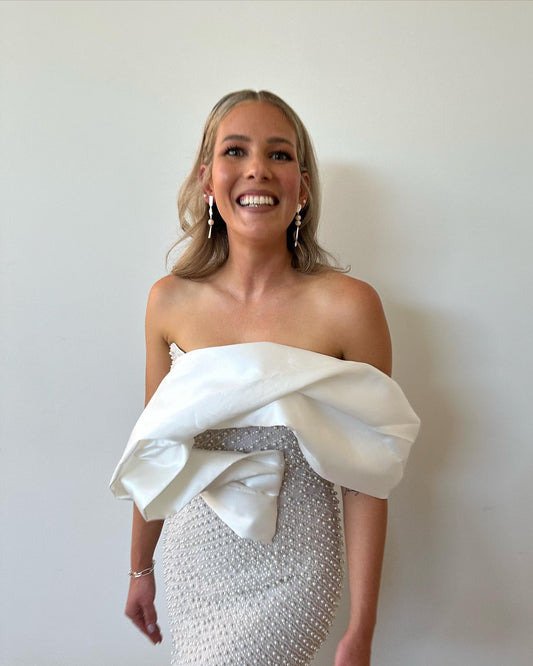 Draped Bardot Pearl Maxi Dress White HV1133