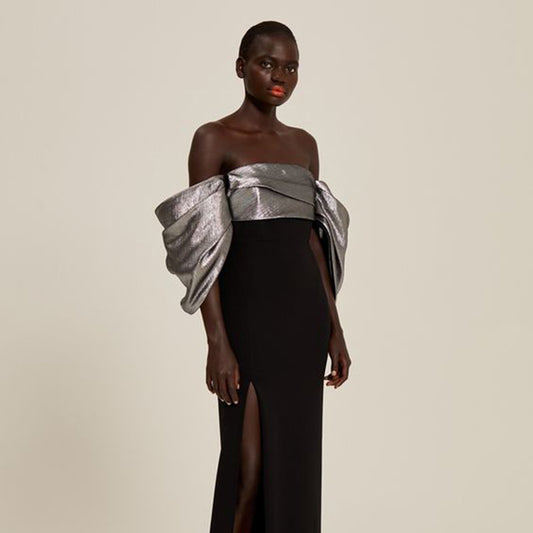 Draped Off Shoulder Midi Velvet Dress HV8886
