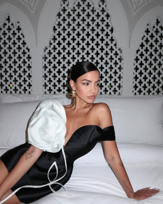 Floral Bardot Dress Black White HV1595