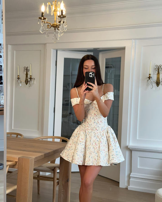 Floral Bardot A Line Dress White HV1257