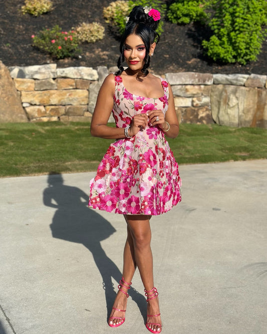 Floral A Line Dress Hot Pink HV1590