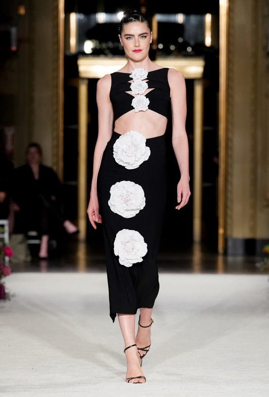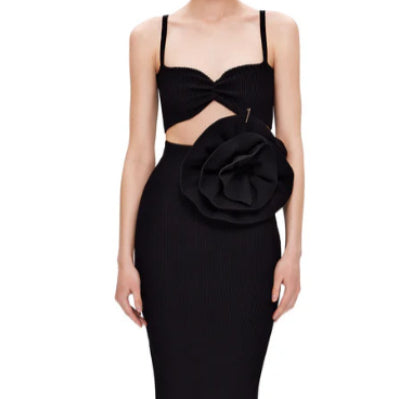 Floral Detail Strapless Midi Velvet Dress Black HV1087