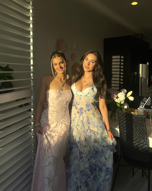Floral Lace Bustier Two Piece Maxi Dress Pink