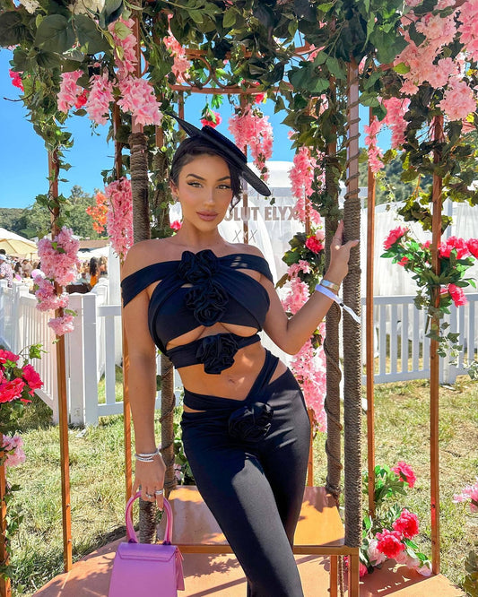 Flower Detail Cut Out Jumpsuit Black HV9507