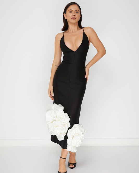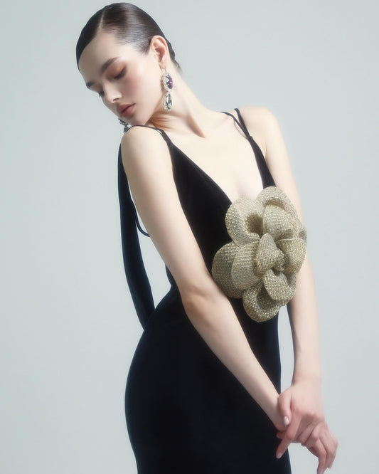 Flower Detail Pearl Straps Maxi Dress HV9874