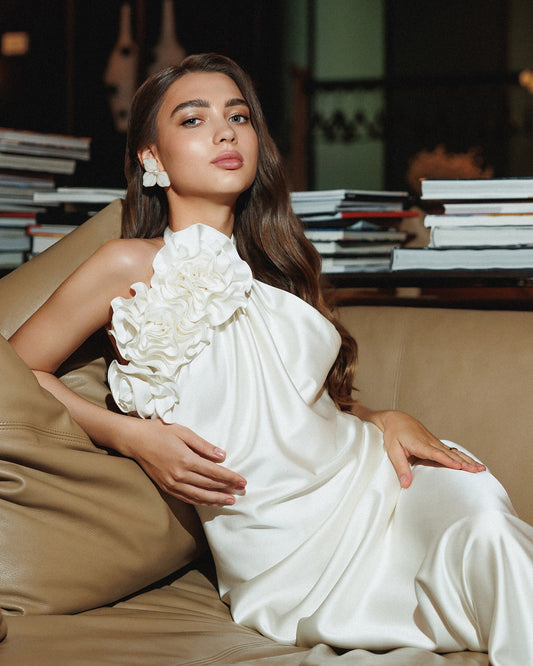 Halter Floral Detail Maxi Dress White HV1995