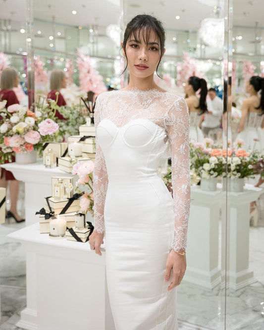 Lace Long Sleeve Bustier Midi Dress White HV9659
