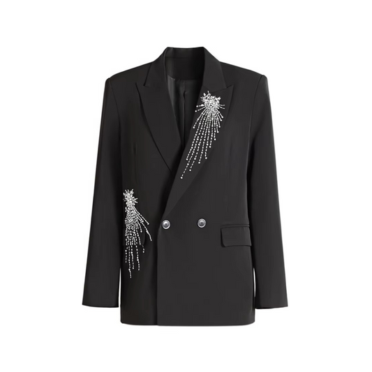 Long Sleeve Embellished Feather Dress Black Blue HV1552