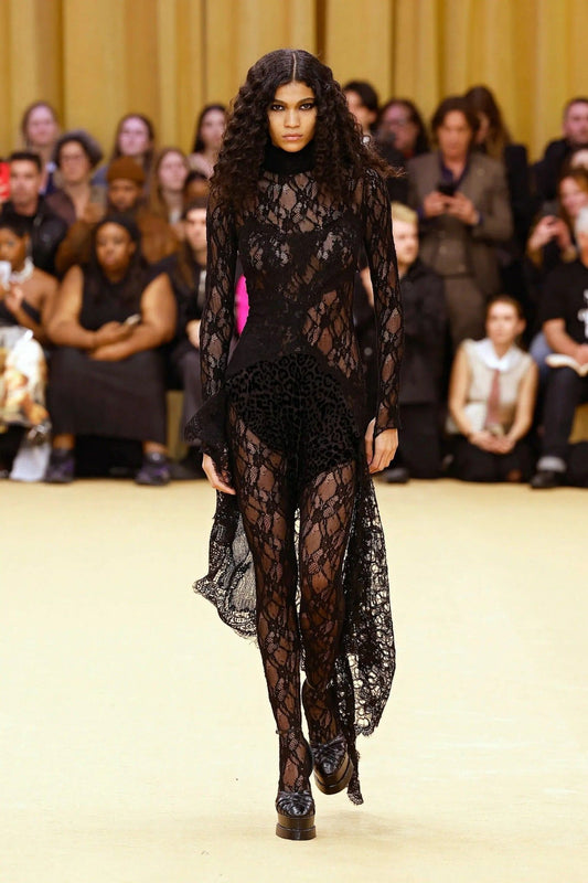 Long Sleeve Maxi Lace Velvet Dress Black HV