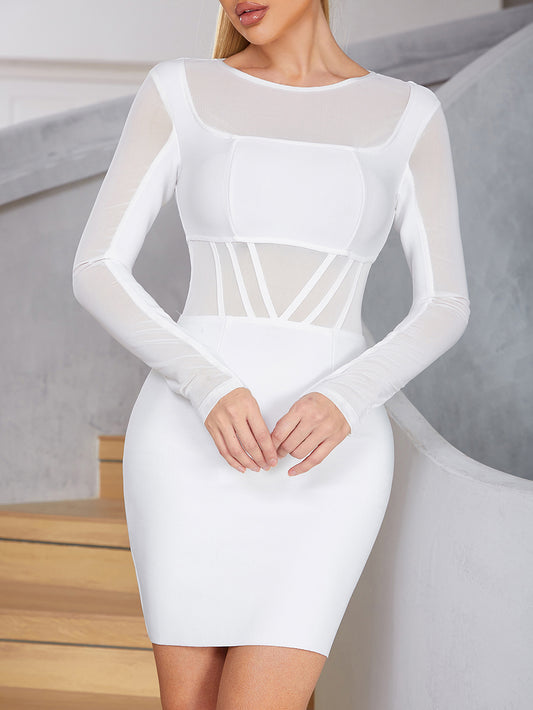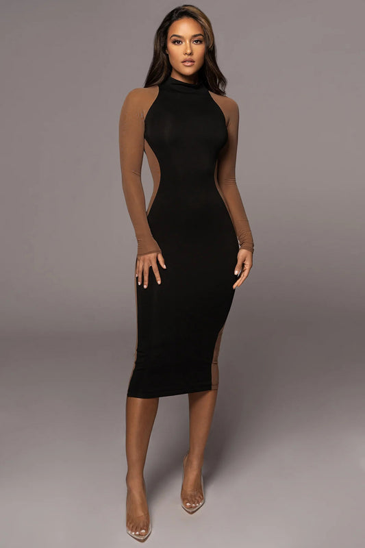 Long Sleeve Mesh Insert Midi Dress HV1502