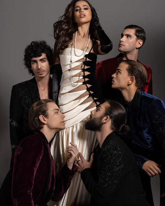 One Shoulder Velvet Insert Maxi Dress Black White HV2075