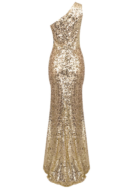 One Shoulder Sequin Maxi Dress Gold HV1073