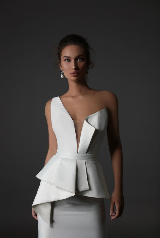 One Shoulder Ruffle Fluted Midi Dress V8749