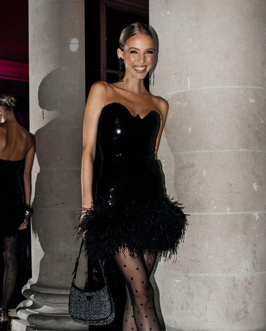 One Sleeve Rhinestone Tassel Velvet Dress V8564