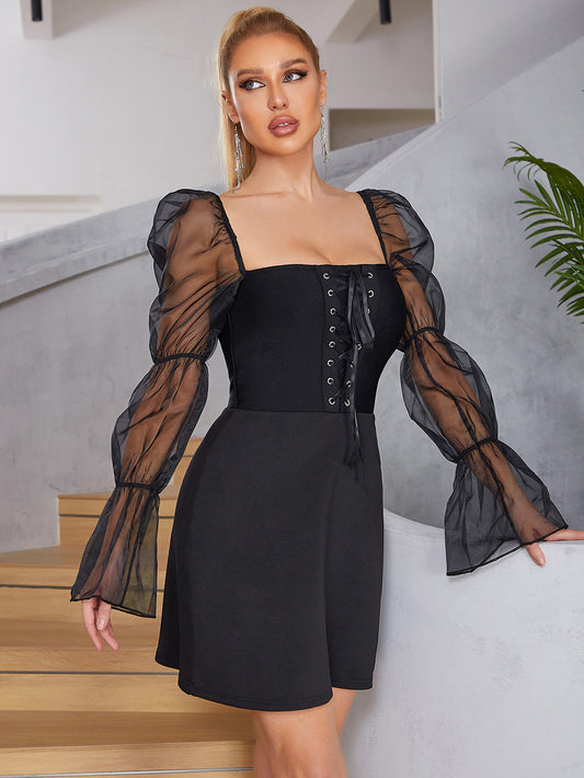 Puff Long Sleeve Lace Up Black HV8973