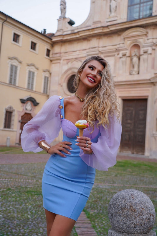 Puff Long Sleeve Bustier Dress Blue Purple V8048B