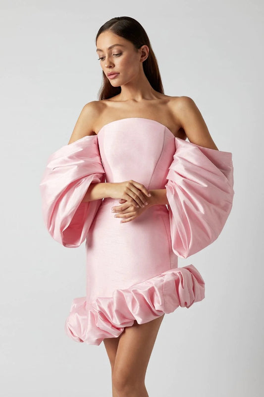 Puff Sleeve Off Shoulder Dress Pink HV9785