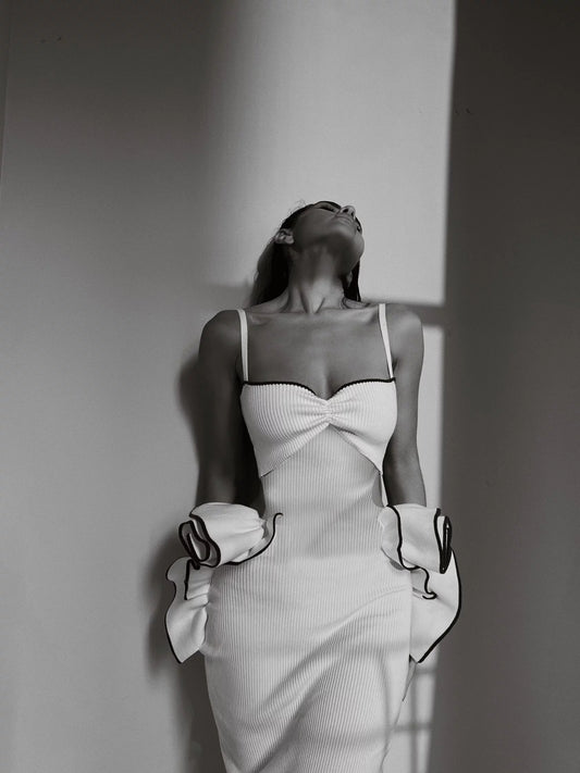 Ruffle Ribbed Two Piece Midi Dress HV9055