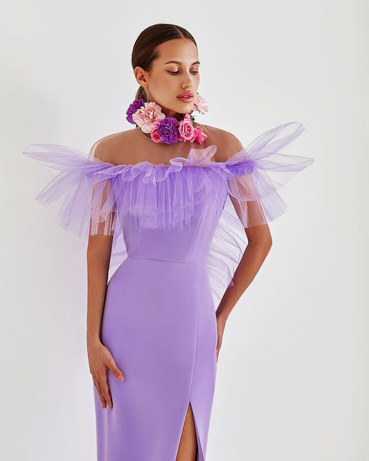 Sold outRuffle Mesh Midi Dress Purple HV8744