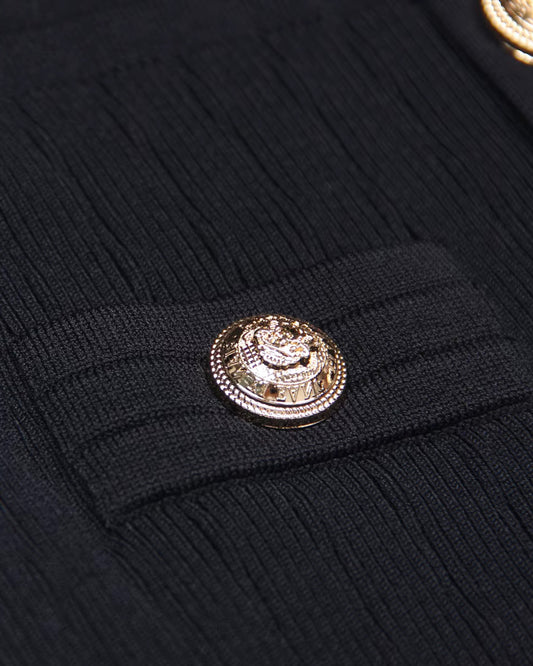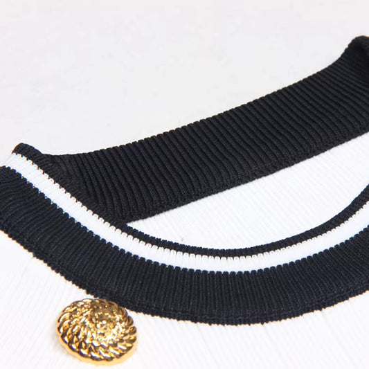 Short Sleeve Lace Pearl Midi Dress Black White V8606