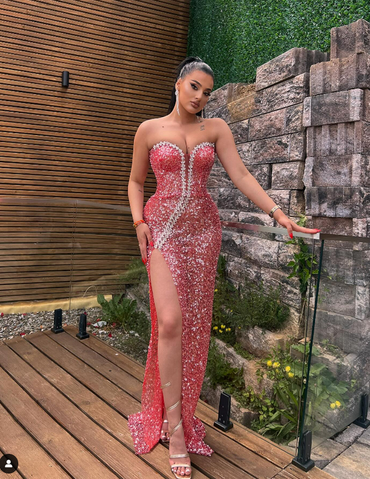 Strapless Crystal Sequin Maxi Dress Pink HV1914