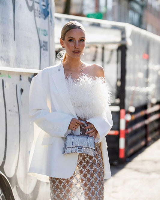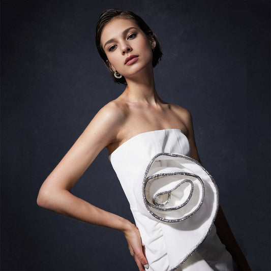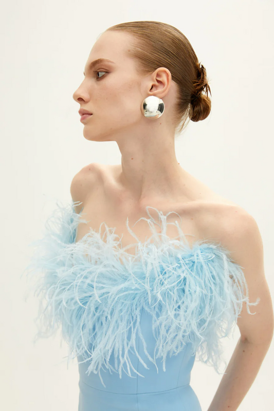 Strapless Draped Sequin Feather Midi Dress HV8841