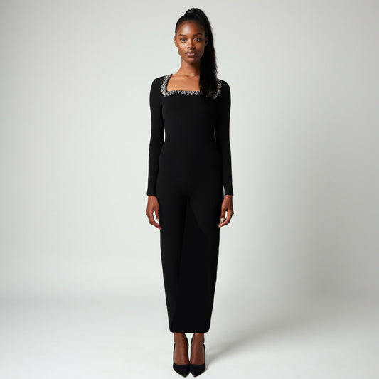 Long Sleeve Crystal Maxi Dress Black HV1807