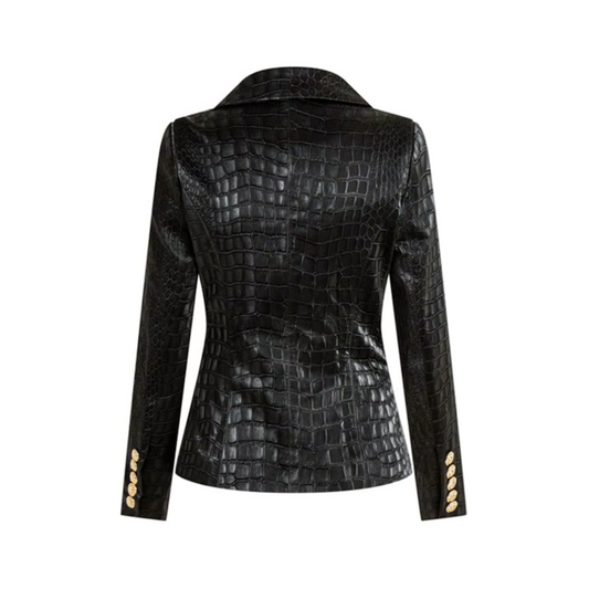 Long Sleeve Crocodile Faux Leather Jacket Black