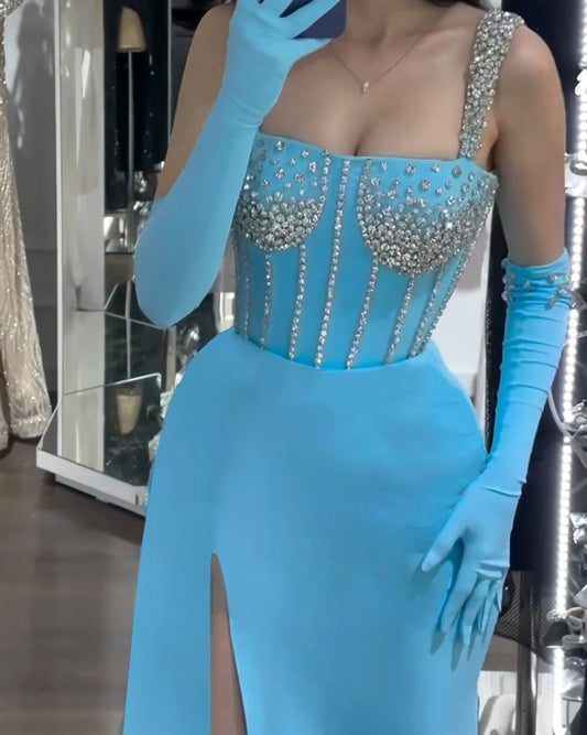 Crystal Bustier Feather Detail Dress Blue HV2192