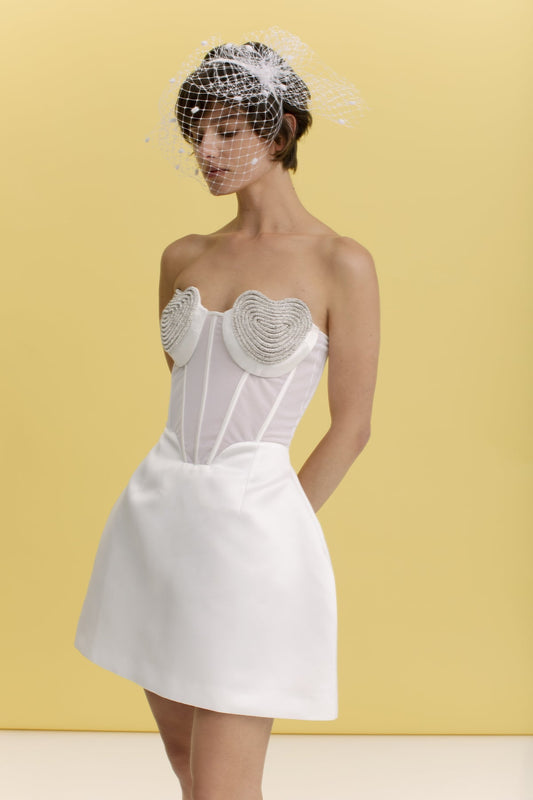 Strapless Bustier Mesh Detail Midi Dress Pink HV9531