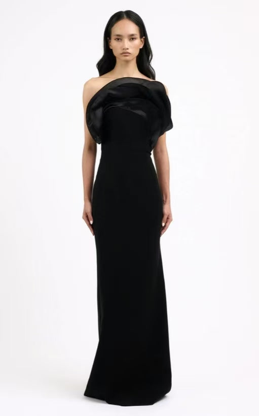 Strapless Petals Maxi Dress Black