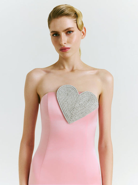 Crystal Heart Strapless Midi Dress Pink