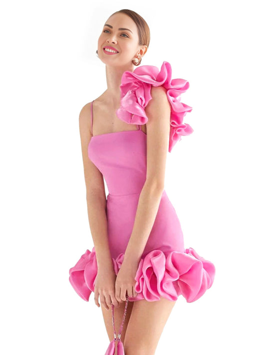 Printed Ruffle Asymmetric Maxi Dress Pink HV1614