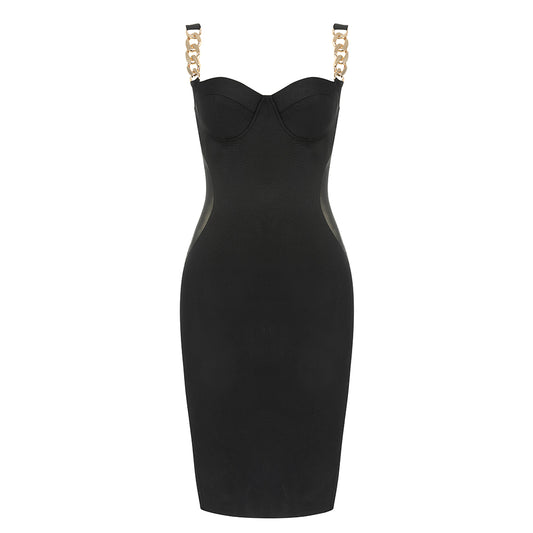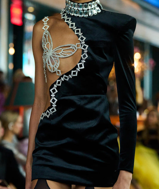 Lace Up Detail Sparkly Mesh Dress Black HV9556
