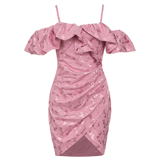 Ruffle One Sleeve Corset Dress Blue HV8486