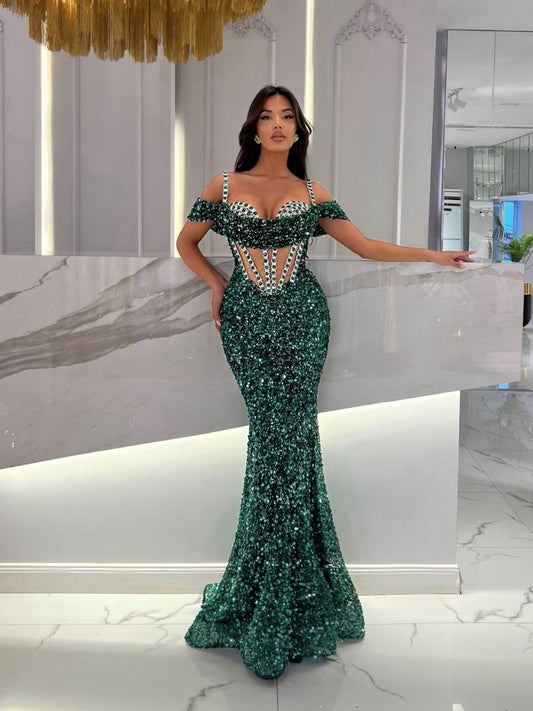 Crystal Corset Sequin Maxi Dress Green HV2002