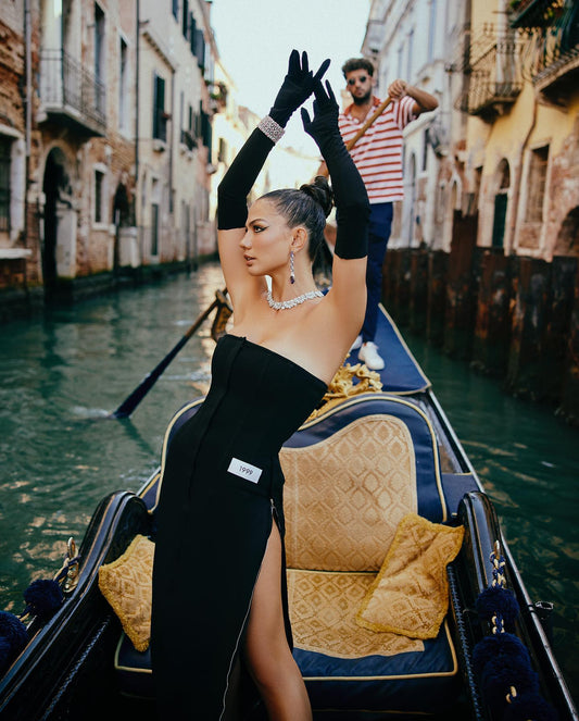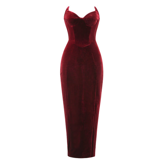 Strapless Bustier Maxi Velvet Dress Black HV1069