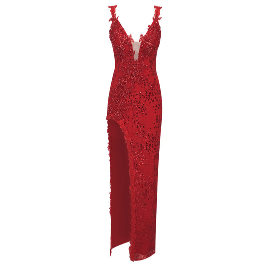 Laceleaf Detail Mesh Insert Maxi Velvet Dress Black HV1151